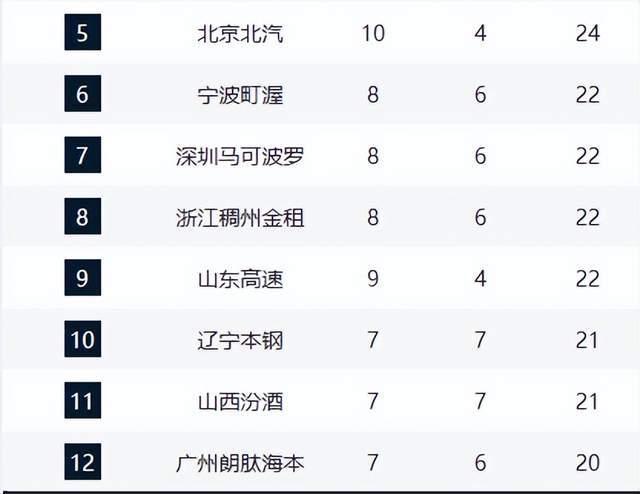 宁波、深圳和浙江以8胜战绩位列6-8位。黑马宁波队本轮大胜山西,攻守两端均压制对手,展现出强劲的上升势头。深圳队凭借快速的攻防转换和侵略性打法,让对手难以跟上节奏。浙江队则已取得四连胜,状态持续升温,成为中游集团的有力竞争者。